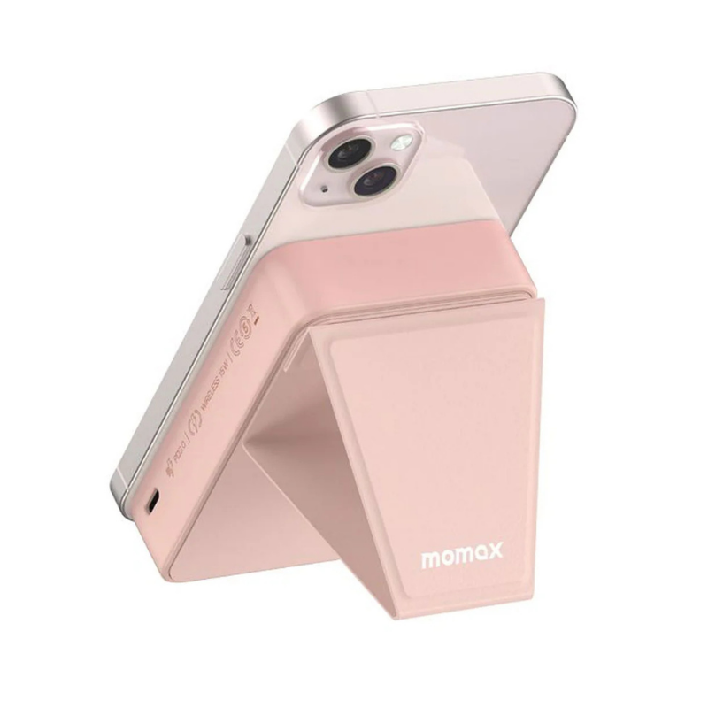 MOMAX IP121P Q.Mag Power 15 Magnetic Wireless Battery Pack with Stand 10000mAh Pink شاحن وايرلس ماكسيف مع ستاند موماكس